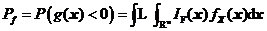 假設(shè)含n維相關(guān)正態(tài)基本隨機(jī)變量結(jié)構(gòu)的極限狀態(tài)函數(shù)為,則結(jié)構(gòu)的失效域。依據(jù)失效概率的定義,相關(guān)正態(tài)變量情況下的失效概率可表示為失效域的指示函數(shù)的聯(lián)合概率密度函數(shù)的乘積在維實(shí)數(shù)空間中的積分,如式所示。