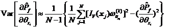 在數(shù)值模擬的過程中,考慮用樣本平均值和方差分別代替總體的數(shù)學(xué)期望和方差,可近似得到靈敏度估計(jì)值的數(shù)學(xué)期望和方差分別如下所示。