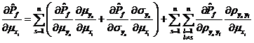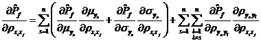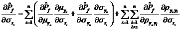 利用式~,可將獨(dú)立正態(tài)變量空間的分布參數(shù)對(duì)相關(guān)正態(tài)變量空間分布參數(shù)的偏導(dǎo)數(shù)全部解析地求出,如式~所示。