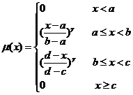 當(dāng)b、c兩點(diǎn)重合時(shí),隸屬函數(shù)蛻變?yōu)橄率?/font>其形狀如圖7.2(b)所示。