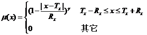 其中>0、分別為模糊變量的隸屬函數(shù)的兩個(gè)分布參數(shù),為正偶數(shù),對(duì)于一個(gè)給定的隸屬函數(shù)為一定值,僅僅包含兩個(gè)參數(shù)。